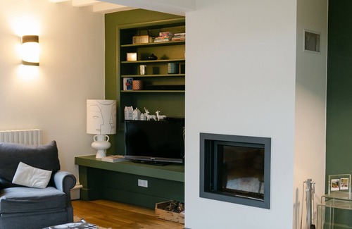 Chic and raw, these are the two words that could sum up the character house. The colours are intense and elegant, with a warm palette of green. The decoration is meticulous, the combinations of materials are sought after: concrete meets stone on the walls and floors.