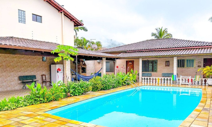 Curta sua viagem em uma ótima casa a 260 metros da Praia Solemar, próxima a praia de Mongaguá, que conta com uma orla com um lindo paisagismo cheio de pequenos jardins floridos. Com vista para a Serra do Mar, o local conta com uma academia popular, bancos, ciclovias e quiosques. A propriedade conta com 3 quartos e 3 banheiros. Aproveite para relaxar e se divertir com cadeira de praia, churrasqueira, guarda-sol, piscina privada e rede de descanso. Reserve já sua viagem à Praia Grande!