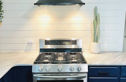Step into an oasis of modern bohemian chic! Behold this newly crafted 3-bedroom, 2-bath bungalow by Havinn Designs, complete with a fenced backyard and a relaxing 6-person hot tub. Parking? Sorted – there's room for 3+ cars in the driveway plus street parking. With 3 queens, 4 single bunked beds, and 2 queen futons, you've got plenty of room for your crew. The spacious open concept w sleek Carrera marble countertops sets the scene. Entertainment? Covered – enjoy 3 Roku TVs w Sling TV & Netflix.