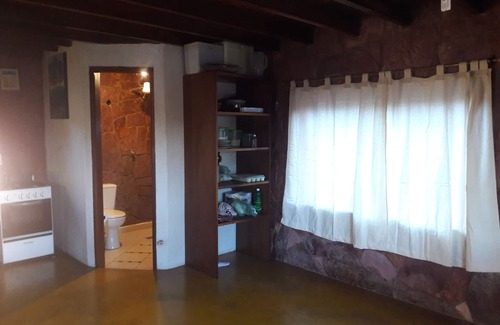 It is a mezzanine, has 2 bathrooms, balcony with hammock, outdoor shower, barbecue and fitted kitchen. Overlooking the spring. Whole house of stone, gives a charm and warmth to your stay. Place to park the car inside the lot. Wooden benches scattered around the yard and campfire.