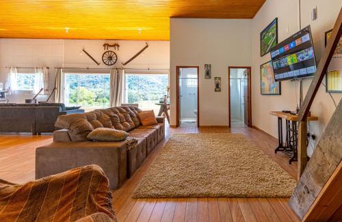There's a picnic area and guests can use free Wifi and free private parking. The air-conditioned vacation home consists of 5 bedrooms, 2 living rooms, a fully equipped kitchen with an oven and a kettle, and 5 bathrooms with a shower and a hair dryer. A flat-screen TV with streaming services is offered. There's also a seating area and a fireplace. Guests at Casa de Campo e Hospedagem Fazenda Esperança will be able to enjoy activities in and around Bom Retiro, like walking tours. A baby safety gate is also available at the vacation home, while guests can also relax in the garden. Humberto Ghizzo Bortoluzzi Airport is 96 miles from the property.