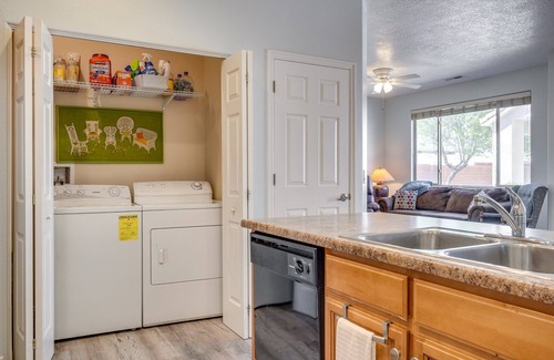 In-Unit Laundry: Full size washer/dryer hidden off the kitchen keeps towels and linens fresh.