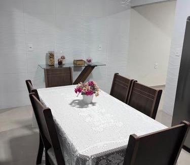Providing barbecue facilities, Casa de temporada da vó zelina provides accommodations in Piranhas. This property offers access to a balcony, free private parking, and free Wifi. The air-conditioned vacation home is composed of 3 separate bedrooms, 2 living rooms, a fully equipped kitchen with a stovetop and kitchenware, and 2 bathrooms. A flat-screen TV is provided. For added privacy, the accommodation features a private entrance. The nearest airport is Paulo Afonso Airport, 45 miles from the vacation home.