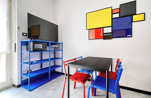 Casa Mondrian is an apartment inspired by the art of Dutch painter Mondrian, ideal for both business and leisure stays. Located in Milan, on the second floor, the apartment offers city views and a strategic location. It is a non-smoking property equipped with air conditioning, Wi-Fi, washing machine, television and an outdoor balcony. The fully equipped kitchen includes dishes, crockery and appliances such as an oven, dishwasher and refrigerator/freezer. The sleeping area can accommodate up to 4 people; there is a bedroom with a double bed, as well as a double sofa bed in the living room.