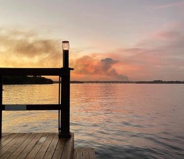 Offering an open-air bath, Casa no rio Paranapanema - Condomínio Oásis offers accommodations in Santo Inácio. Featuring free Wifi, the property also has a private beach area, water sports facilities, and an outdoor swimming pool. The vacation home features a picnic area and a 24-hour front desk. This air-conditioned 2-bedroom vacation home comes with a fully equipped kitchen, a seating area, a dining area, and a satellite flat-screen TV. Guests can take in the views of the lake from the balcony, which also has outdoor furniture. For added privacy, the accommodation has a private entrance and is protected by full-day security. For those times when you'd rather not eat out, you can cook on the barbecue. Activities such as cycling, fishing, and hiking can be enjoyed in the area, and guests can relax along the beachfront. Kids pool is also available at the vacation home, while guests can also relax in the garden. Presidente Prudente Airport is 45 miles from the property.