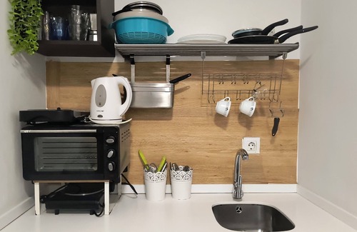 While you're here, you can enjoy all the comforts of home and more, including WiFi and air conditioning, as well as a dryer and an ironing board. Other amenities include towels, soap, toilet paper, and a hair dryer.