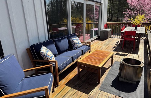 Enjoy our peaceful, updated Shokan home in the Catskills. This delightful house features 1 king bed and 2 queen beds, 3 bathrooms, a library/den ideal for remote work, and a stunning great room with soaring ceilings and natural light, perfect for a tranquil getaway. Relax on the expansive deck overlooking a private creek. Minutes to Ashokan Rail Trail; short drive to Woodstock, Kingston, and Phoenicia. First-time rental; seeking respectful guests. No pets or large parties, please. We're happy to assist with any questions while you stay at our house.