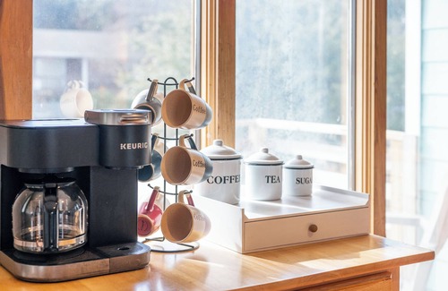 ✔ Coffee Station with starter coffee (drip and k-cups), tea, and hot chocolate provided