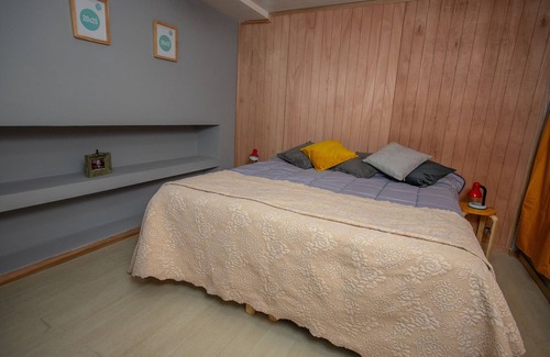 Ropa blanca y toallas ara todos los huéspedes . cuatro matrimonial y otros dos cuartos con cama y carricama . tv con canales de aire y wi fi . Sobre la calle principal a metros del centro cívico , y a una cuadra de el lago , su ubicación es ideal para pasear por chocolaterías , galerías , y centro de bariloche . Preparado para niños , seguro y cerca de todo