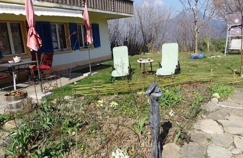 The 3-room flat is located on the ground floor of a detached chalet and has a large and a small terrace as well as free access to the entire garden. We live in the same house on the upper floor, have a small dog, and we also welcome guests with dogs. You can relax here in our natural garden, where deckchairs are available, or watch the birds and insects. The balmy summer evenings tempt you to sit outside and enjoy the evening with a barbecue and fine drinks. There is the opportunity to make pottery, alone or under supervision. Various types of clay and many glazes are available. The resulting piece can also be fired and glazed here.