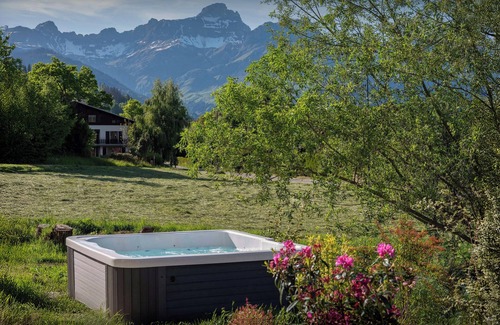 You can relax in the hot tub while enjoying the breathtaking view of Mont Blanc.