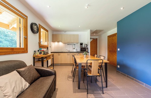 Boasting a beautiful view of the Alps, the chalet Belle Etoile - Val de Tamié with step-free access and interior is located in Faverges. The 60 m² property consists of a living room with a sofa bed for 2 people, a kitchen, 2 bedrooms and 1 bathroom and can therefore accommodate 6 people. Additional amenities include Wi-Fi, a TV as well as a washing machine. Furthermore, a table tennis table is available on the property. A baby cot and a high chair are also available. This accommodation does not offer: air conditioning. This chalet features private terraces, both open and covered, perfect for relaxing in the evenings.