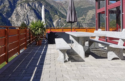 Chalet Grächen / St Niklaus with a panoramic view of several four-thousanders is located in St. Niklaus. Chalet Grächen / St Niklaus with a panoramic view of several four-thousanders provides accommodation, featuring TV, Balcony/Terrace, Child Friendly, among other amenities. This Apartment features TV, Balcony/Terrace, Child Friendly, to make your stay a comfortable one.