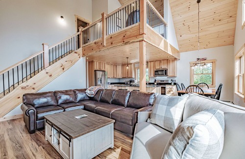 Poised on a small hillside outside Bethel Village sits a brand-new mountain house ready to welcome its first guests. This stunning, tri-level chalet was completed in 2021, and everything is new, shiny, and untouched.