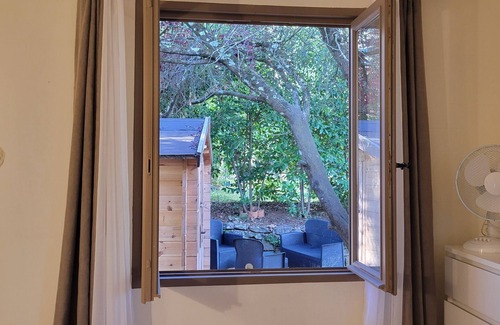 Located in Saint-Martin-de-Valgalgues, this welcoming chalet lets you experience it all. Jump into your car and make short work of the 5-minute drive to Cévennes National Park or the 20-minute drive to Bamboo Grove in the Cévennes (and enjoy the property's convenient onsite parking in the meantime).