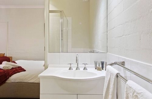 Champagne is a cozy studio-style apartment centrally located in Dinner Plain, ideal for up to two guests. The apartment features a compact kitchen equipped with a microwave, dishwasher, and full-sized fridge. The sleeping area includes a queen bed, and the separate bathroom offers a shower, vanity, and toilet. Additional amenities include a washer/dryer combo, flat-screen TV, electric wall panel heaters, and complimentary Wi-Fi.