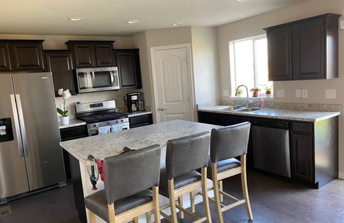 Get ready to relax in this 3-bedroom house in Colorado Springs. This lovely property features 2 queen beds and 1 child bed, perfect for families or small groups. With amenities like a washing machine, WiFi, treadmill and weights fitness room, guests can enjoy a comfortable stay. The 3 bathrooms offer both showers and bathtubs for added convenience. Enjoy your time in Colorado Springs at our cozy house.