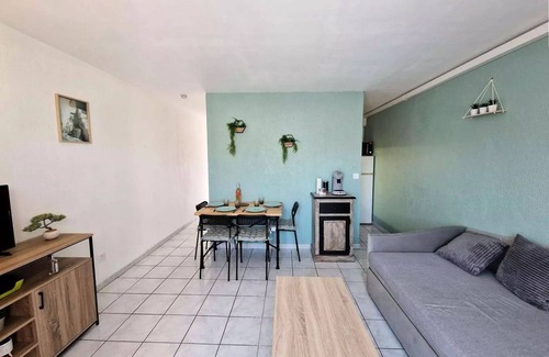 Accommodation: Located in a small residence, this recently renovated apartment offers modern comfort for a pleasant holiday in Marseillan beach. Located on the first and last floor, it features a sunny terrace and air conditioning.Characteristics of the apartment :Bright living room with a convertible sofa (180x200), table, chairs, TV, and air conditioning. Ideal for relaxing.Equipped kitchen: ceramic hob, microwave, refrigerator/freezer, electric coffee maker and Senseo coffee maker, and all the dishes needed to prepare your meals.Chamber: A room with a double bed, dressing room and air conditioning.Bathroom with shower, washbasin, toilet.Terrace: Enjoy a south facing terrace with a garden furniture, perfect for meals outdoors or for sunbathing.Private parking: A parking space is available.Additional information: Pets not allowed. Additional Internet access. Not included in the rental: Final cleaning, bed linen, towels, cot, high chair, tourist tax. Information on the risks to which this property is subject is available on the Georisques website.This apartment in Marseillan with its sunny terrace, air conditioning, and amenities is a perfect option for a successful holiday.