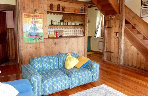 The apartment has a large living room with a beautiful walnut dining table and two large windows from which you can see the Grivola. On the same floor there is a kitchen and a bathroom. Upstairs are the master bedroom, the bedroom with three beds and the main bathroom. Both floors have a balcony. The house is very sunny and has a large private garden with barbecue and parking.