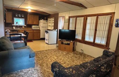 Perfect getaway for fall or winter! Cozy, heated cabin near the lake! Houghton Lake and Sullivan Beach are waiting for you near this cozy little cabin. This 1-bedroom retreat features a full bed, perfect for a nice getaway. With amenities like AC, heating, and a hair dryer, guests canrelax and unwind. An additional office space with a full bed and a twin bed provides extra room for guests. Enjoy all that Prudenville has to offer when you stay at our place. Sullivan Beach, Trestle Park, Dairy Queen, Kiss Me Coffee, public boat launch all within walking distance!