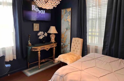 Step into our enchanting 1920s cottage, a 2 bedroom retreat seamlessly blending art and vintage collections. The charming bedroom welcomes you with timeless elegance, adorned with carefully chosen decor for a fun stay. In the living room, plush seating surrounds original oil paintings for wine tasting and art viewing. The dedicated art studio, bathed in natural light, invites creative spirits to explore their talents amid a backdrop of vibrant artworks. This unique cottage is more than accommodation; it's a gallery of fishing history and inspiration, offering an unforgettable escape into the world of art. Located in the heart of the downtown riverfront art district. It is across the street from the two best restaurant in town. There’s plenty to do in the hustle and bustle of downtown.