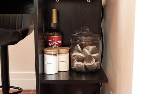 Coffee Bar: Keurig coffee maker with free regular and decaf pods to get you started. Tea, creamer and sugar are all provided. A Mr. Coffee drip coffee maker and pour-over french press are also available.
