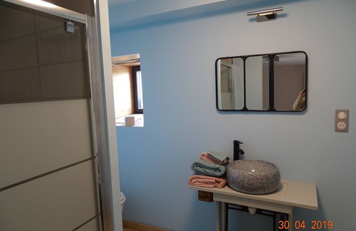 I welcome you in an old barn that I have just renovated and transformed into a guest room with a bed, a wardrobe, a sitting area, a bathroom, a toilet, access to the tv lounge, wifi.