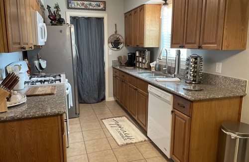 The house features a well-stocked kitchen, laundry room, 3 bedrooms, 2 bathrooms, dining area, sitting room with bar, game/media room with a 75" television and game table, and 2 uncovered parking spaces. The house sleeps 6 comfortably, and is professionally cleaned and sanitized after every stay. You will have no contact with the host unless you make an on-site request.