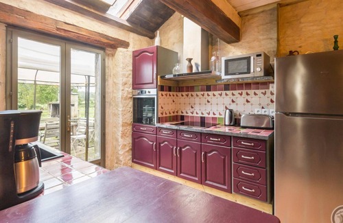 Detached house in the outbuildings of an old medieval manor house. Living room with wood-burning stove (TV, Wi-Fi). Open-plan kitchen (oven, induction hob, microwave, fridge with freezer, dishwasher, Senseo coffee machine). Bedroom 1 with sloped access (140x190 bed). Shower room with toilet (washing machine). On the 1st floor, mezzanine landing, bedroom 2 (140x200 bed), bathroom with toilet, bedroom 3 (1600x200 bed) with desk. On the 2nd floor, bedroom 4 (1 140X190 bed + 90x190 bed), shower room with toilet and bedroom 5 (2 90x190 bunk beds + 90x190 bed). Baby equipment on request. Sheets and towels provided. Beds made on arrival. Cleaning service at an additional cost. Central heating included and wood provided. Stone walls and wooden frames. Private enclosed grounds. Terrace with shelters. Garden furniture. Barbecue. Deckchairs. Swing. Parking. Lake nearby (fishing possible, boat on request). The estate is open to the public in July and August. It's a family adventure that began in 1998 when Valentin and Laëtitia took possession of this medieval manor complex, protected as a Historic Monument! In addition to the organic farming and its 55 hectares of land, the owners are also leading the gradual rehabilitation of the estate. Passionate about history as much as biodiversity, they welcome you to this former 15th century wine press where everything is "homemade"! On 3 levels, you will discover the work always accomplished with the spirit of recovery that drives Valentin and the sometimes medieval atmosphere of these large rooms. The living room, fitted out in the former wine press tower, is not lacking in authenticity! Supported by numerous volunteers, the owners continue to work to preserve this unique place, where you may encounter "Dagobert" the donkey and other chickens, swans, and ducks as they wander around. Guests are welcome to observe the care of the farm animals.
