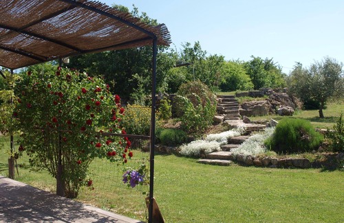 The gite is located in the Luberon in a very quiet environment, next to vineyards and almond trees, with views of the mountains and villages. It is detached from the owners and has its own private entrance.