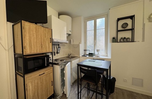 Charming studio in the city center is located in Saint-Nicolas. Charming studio in the city center provides accommodation, featuring Fireplace/Heating, Laundry, TV, among other amenities. This Apartment features Fireplace/Heating, Laundry, TV, to make your stay a comfortable one.