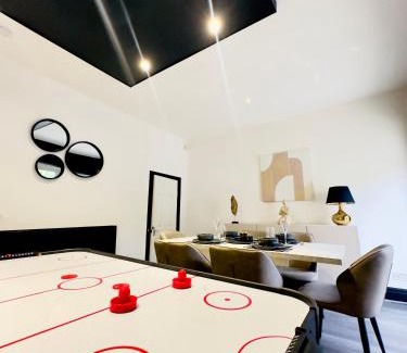 Food & DrinkTea/Coffee makerBathroomShower, Private bathroom, Towels, Shampoo, Free toiletries, Hairdryer, Conditioner, Bathtub, Toilet paper, Body soap, Bathtub or shower, ToiletMedia & TechnologyStreaming service (like Netflix), Flat-screen TV, TVGeneralPrivate entrance, Carbon monoxide detector, Carbon monoxide sources, Ironing facilities, Fan, Hardwood or parquet floors, Iron, Trash cans, Smoke Alarm, Carpeted, Fire extinguisher, Tile/Marble floor, HeatingKitchenStovetop, Wine glasses, Electric kettle, Washing machine, Kitchenware, Toaster, Refrigerator, Dining table, Microwave, Oven, Coffee machine, Kitchen, Cleaning productsLiving AreaSitting area, Sofa, Dining areaBedroomLinens, Wardrobe or closetAccessibilityUpper floors accessible by stairs onlyBuilding CharacteristicsSemi-detachedRoom AmenitiesSocket near the bed, Clothes rack, Non-feather pillow, Drying rack for clothing |