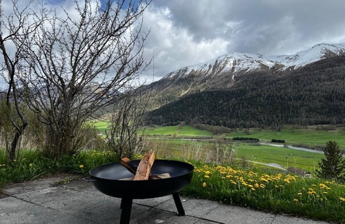 This cosy accommodation is located on the ground floor of an apartment building and has a balcony and a garden seating area with sun loungers and a fire bowl. Situated at the foot of Piz Albanas, the accommodation is the ideal starting point for all kinds of sporting activities: the wonderful "Via Engiadina" hiking trail starts right at the entrance to the house, and the ski area in Zuoz can be reached on foot in 10 minutes. Cross-country ski trails, bike routes, toboggan runs, the ice-skating rink, the golf course, the RhB and the national park are all within easy walking distance.