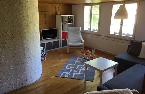 Attention hiking enthusiasts and nature lovers: Charming holiday flat for rent in the picturesque Appenzellerland! The cosy flat is located in a stately apartment building dating back to 1650, some of the original wooden walls can still be found on site.
