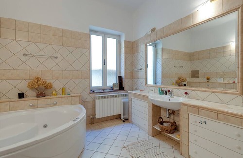 - The bathroom is spacious with a Jacuzzi and WC.