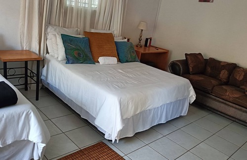 Nestled in a green garden,safe and cool.Our environment has beautiful bird sounds ,it's very cool due to the greenery and frequent watering.The area is in a suburb which is very safe clean.Peace of mind.