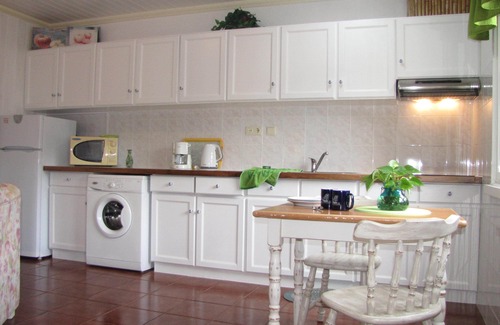All our cottages are self serviced but if you need assistance, we are here to help. Looking for a hiding place in the gardens away from it all? Cottage #5 is steps down to the next level in private location of the lower garden away from parking area of Quinta das Acacias property. This cottage has a new look with double bed for 2 (140 x 190 cm) bedding included, 3 piece bathroom with towels supplied), fully equipped kitchen (with stove top, microwave, kettle, coffee maker, toaster, hand blender, all utensils, cookware, dishes, iron and board) and TV with Wi-Fi in the living area. Outside your door is a basalt stoned area to the BBQ area.