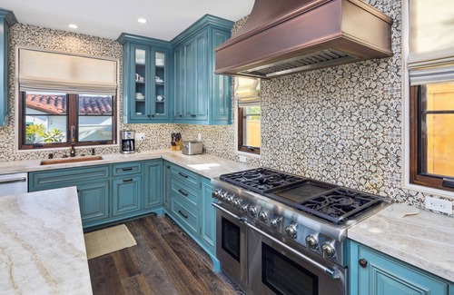 Thischarming Coastal Spanish home built in 2018 is situated on one of the quietest streets in Coronado. Just blocks from all the places you want to go: Coronado beach, Hotel Del, Spreckles Park, San Diego Bay, restaurants and all the Coronado action! No expense was spared in constructing this gem, with high end appliances, outdoor spa, BBQ, fire pit, both an indoor and outdoor fireplace, Tempurpedic master bedroom mattress. Cook in the fully equipped gourmet kitchen with Thermador Dual Oven Range, Thermador refrigerator, Bosch dishwasher, and separate Sub-Zero wine and beverage refrigerator. There are 4 bedrooms-each with it's own private full bathroom: 3 in the main house, and 1 in the rear casita. Casita is set up with desk and a pullout couch bed. Loft area provides another living space and Peloton. This home is beautifully decorated with unique Spanish tiles for each room. Premium hardwood floors with area rugs are placed throughout the home. The house has a state of the art entertainment system: 5 flat screen TVs, Apple TV with 4 zone sound system will allow you to entertain with ease. Outdoor living is what this house is all about, with a covered outdoor patio, dining spa-side for 6, fire pit seating, and also a master bedroom outside deck for 2! Owner will provide 3 beach cruiser bikes, and towels for the whole clan. This house is turn key ready, comes with 2 professional house cleanings during your stay, and 1 spot in the garage is reserved for your use.
