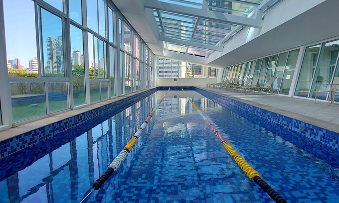 Super elegant bedroom and living room, located on the 12th floor of the Mandarim Salvador Shopping building. With outdoor pool and indoor lap pool, gym, playground. Jacuzzi, sauna, coworking room by appointment. Mini market and separate laundry.