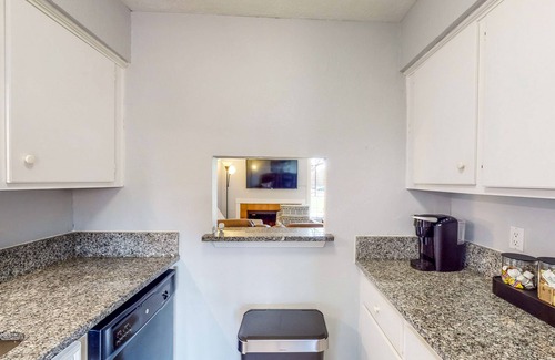 Relaxing will come easy in the spacious living room where the seating is soft and the TV is large. When hunger hits, the well-equipped kitchen comes prepared with ample meal prep space and stainless steel appliances. Dine at the adjacent dining table or sit in the enclosed yard under the Texas sun.