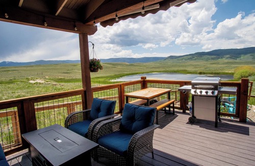 Look west to sunsets and beautiful mountain views with the Grand Elk Golf Course in the distance. We also sit just off of the water from a year around small pond which adds to the scenery and always gives our guests something to look at. We have regular visitors coming to the pond to get a drink or take a swim. Obviously ducks, birds of all varieties but also deer, antelope, coyotes, fox, mountain lions, bears and even Elk have all been seen here in the valley.