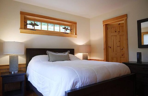 Located on Lake Shore Village Resort's property, Located on Lake Shore Village Resort's property, Blizzard & Snowball were the names of the two ski trails, so it's only appropriate we name our two newest homes after those trails. The three-story homes are mirror images of each other. The lower level has a "family master" bedroom complete with 1 queen bed and 1 set of bunks, a full bathroom, a living room and laundry. It is a popular spot for the kids to spend time while the adults entertain themselves upstairs. The main floor has a beautiful living room with a vaulted ceiling, pine floors, and a fieldstone gas fireplace. A mudroom, fully appointed kitchen and dining area, and a master suite can also be located on this main floor. Two large sliders lead out from the living room to a wrap-around deck with great views of the lake. Lastly, the third floor loft area has a large master suite with private bath and sitting area.