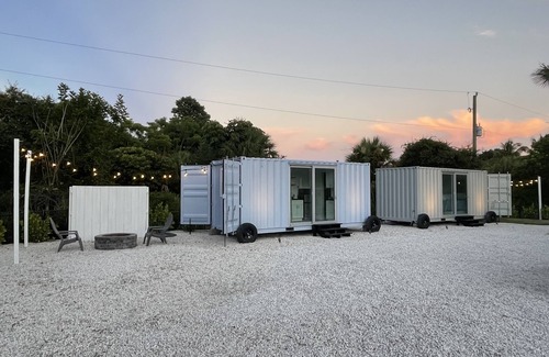 One of two luxury 20ft shipping containers within a resort style property. This cozy unit features a Full XL bed, TV, kitchenette, mini fridge/microwave and full size bathroom. Enjoy outdoor sports on your own private pickelball/basketball court or lounge in the oversized pool and hot tub. Property is located minutes from the beaches, downtown Jensen Beach, Hawks Bluff State Park, shopping, as well as fine dining. This property is truly a secluded paradise.