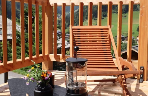 Chalet beautifully and recently renovated, in a contemporary style with clean lines, furnished with design furniture, a chosen and modern decoration. Only 5 minutes walk from the village center. Facing south. View of the peaks and the village. Charges (140€ extra for wood, wifi, heating and final cleaning).