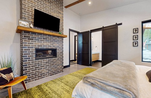 When you’re not lounging on the lake shore or shredding the powdery slopes, pure bliss awaits in the sun-filled living area featuring contemporary furnishings, coffee house brick backdrops, warm wooden accents, and floor-to-ceiling windows welcoming in the majestic mountain views. Relax by the 60” linear fireplace with a good book or spice up your dinner menu in the stylish, European kitchen hosting high-end appliances and a spacious center island.