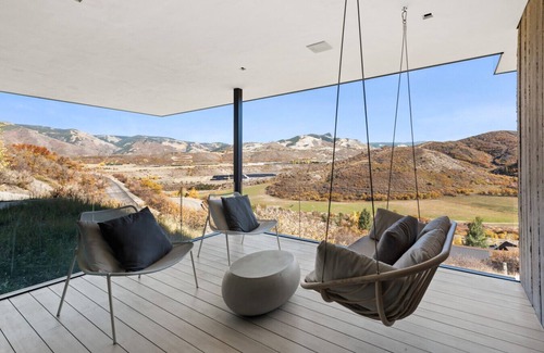 This contemporary architectural home has been meticulously crafted to harmonize with its natural surroundings while boasting an unwavering commitment to quality and artistry. Nestled into the mountainside, it offers breathtaking vistas and a seamless integration of indoor and outdoor living spaces. The Living Room, Dining Room, and European Kitchen open up to sweeping mountain views and a warm wood-burning fireplace. Every room is elegantly furnished with designer pieces, characterized by their minimalistic design and soothing neutral tones. This residence features five bedrooms, each with its own en-suite bathroom, as well as a mudroom, a laundry room equipped with two washers and two dryers, a convenient powder room, a concealed pantry, and a spacious two-car garage.
