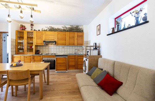 Within the house, you'll find convenient facilities such as a storage room for bicycles, a storage room for skis, a central heating system, a shared washing machine, and a drying room. During winter, it's advisable to carry snow chains for your vehicle. Parking is available on-site, ensuring a hassle-free stay.