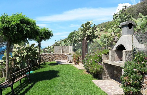 Situated 19 kilometers from the center of Portoferraio, this vacation rental offers easy access to the ferry terminal for exploring nearby islands. The sandy Innamorata beach is a mere 800 meters away, providing a perfect spot for soaking up the sun and enjoying the crystal-clear waters. Other notable attractions in the vicinity include the picturesque surroundings of lush green trees and the elevated slope that offers breathtaking views from the property.