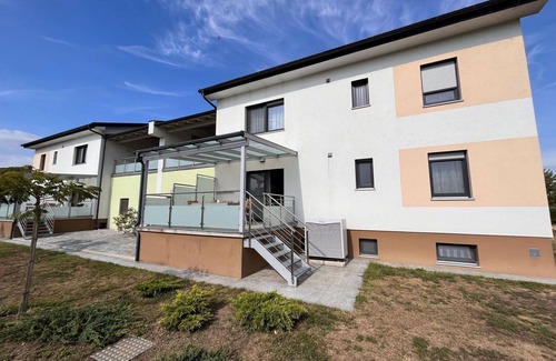 This modern and beautiful Fuchs apartment block features 4 units surrounded by scenic meadows and fields in Donnerskirchen, Austria. The holiday rental offers convenient access to nearby amenities like an outdoor pool 1.5 km away, a golf course within 2.2 km, and is situated in a residential area 300 meters from Donnerskirchen's center. With its prime location, you can easily explore nearby attractions while enjoying the apartment's luxurious amenities, including a yard, internet Wi-Fi, parking, and an installment plan for convenient payment.