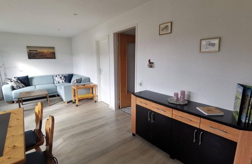 The 3-room flat (60sqm) is located in an apartment block on the mezzanine floor. Fantastic view of the mountains and the valley. Nature on the doorstep. Ski bus stop directly at Via Crest la Crusch, free transfer to the ski school and mountain railway. The shops and restaurants are just a 10-minute walk away.